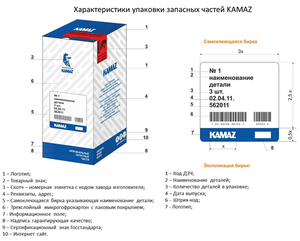 Еще раз изучите список запасных частей реализуемых в фирменной упаковке KAMAZ и не приобретайте данные запасные части без упаковки или в упаковке других производителей. Обратите внимание на характеристики упаковки: