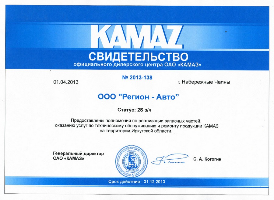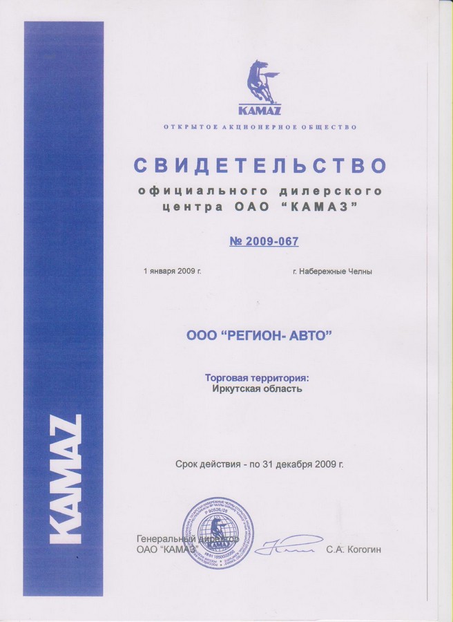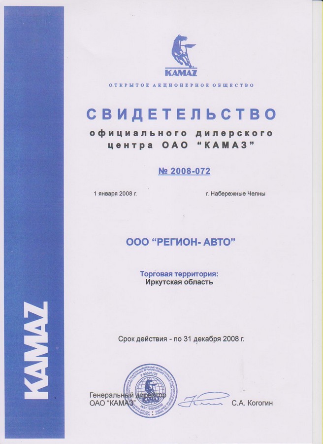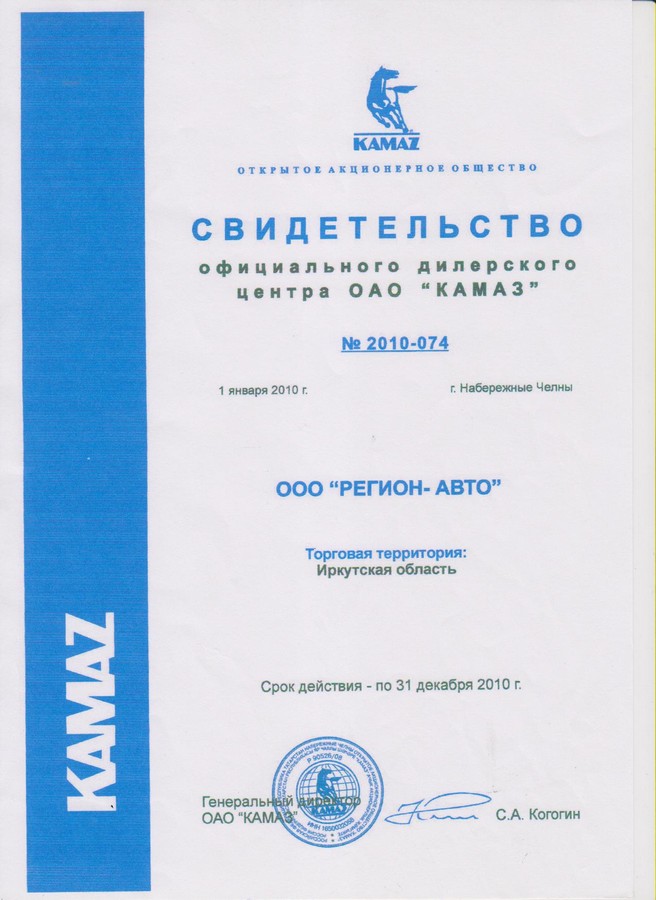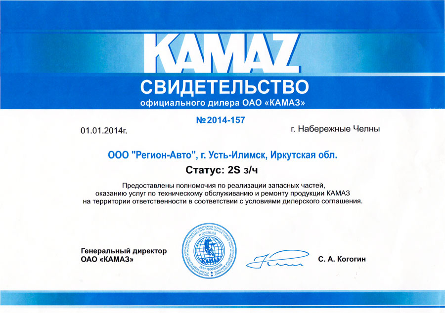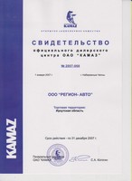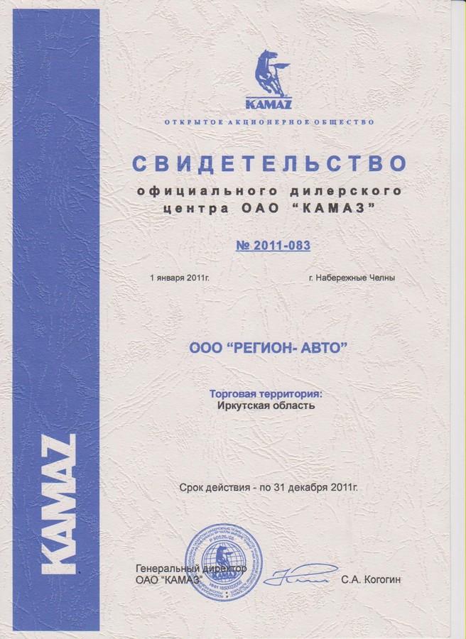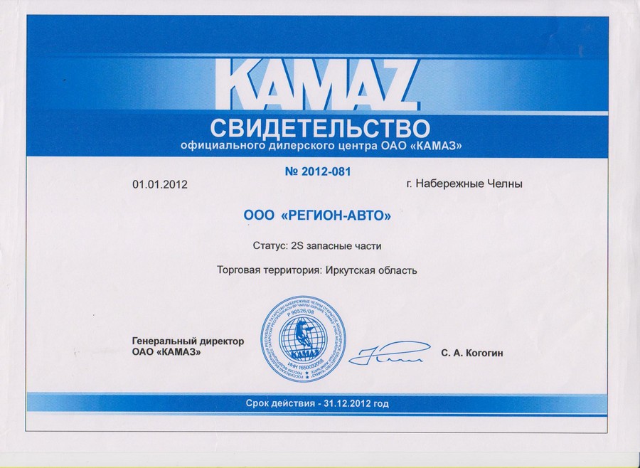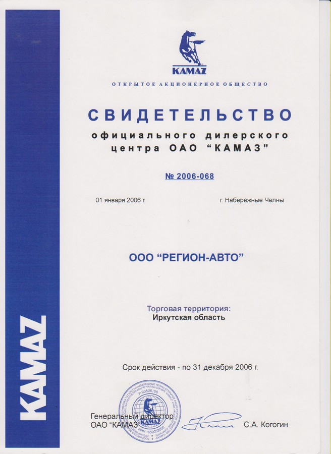 Свидетельства официального дилерского центра ПАО "КАМАЗ"